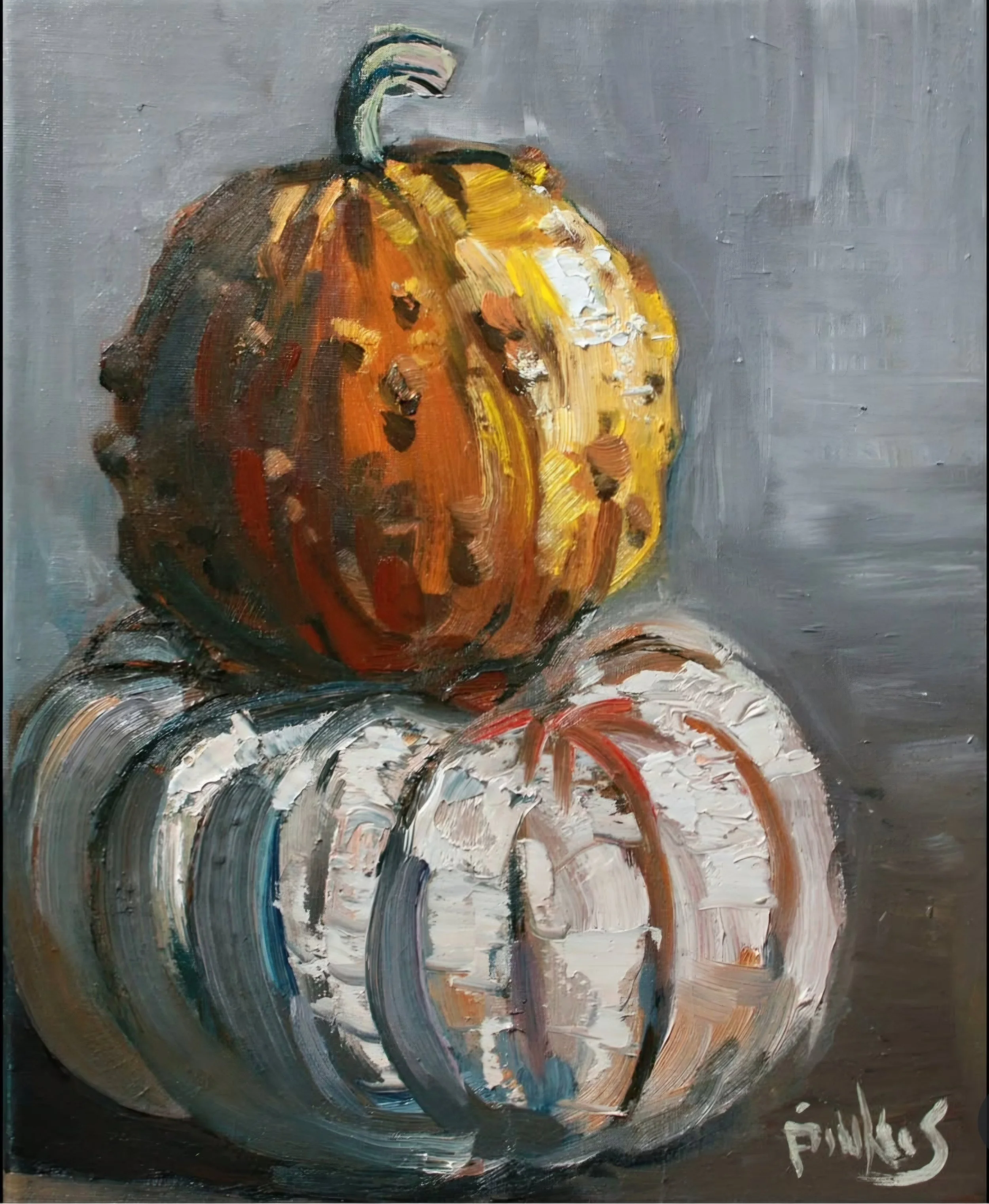 A fun still-life study showcasing the artist's expressive texture on a unique seasonal subject.