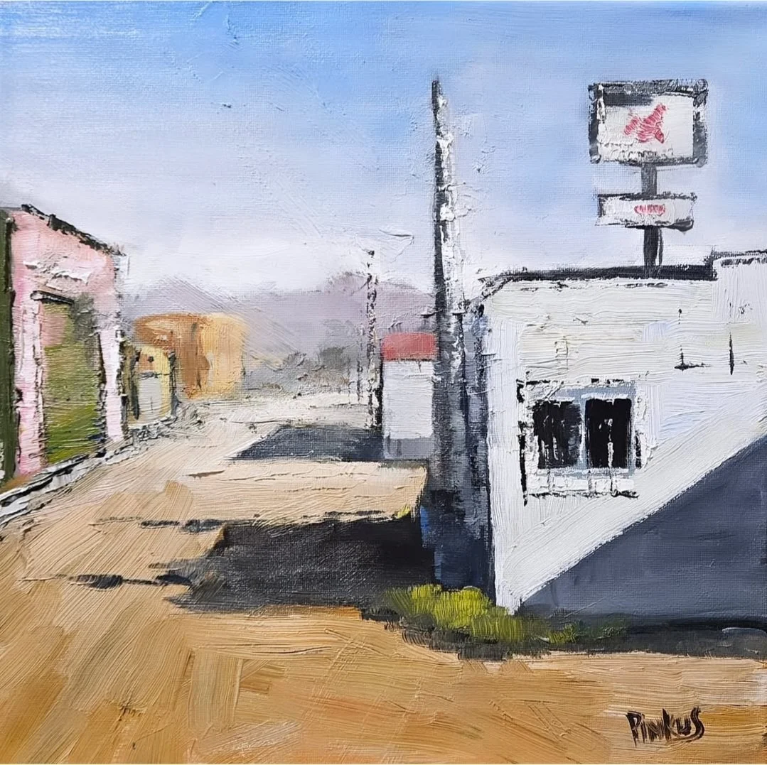 There’s something mysterious, lonely, yet strangely beautiful about the dirt road town. There’s the obvious charm, but also a sense of deja vu on any given Main Street. This painting revisits an older work of mine, and I feel I really captured the essence of this scene through atmospheric perspective, dark stretching shadows, and contrasted highlights. “Dirt Road Town Revised” is one of my favorite pieces I’ve done recently, and I learned so much from the process.