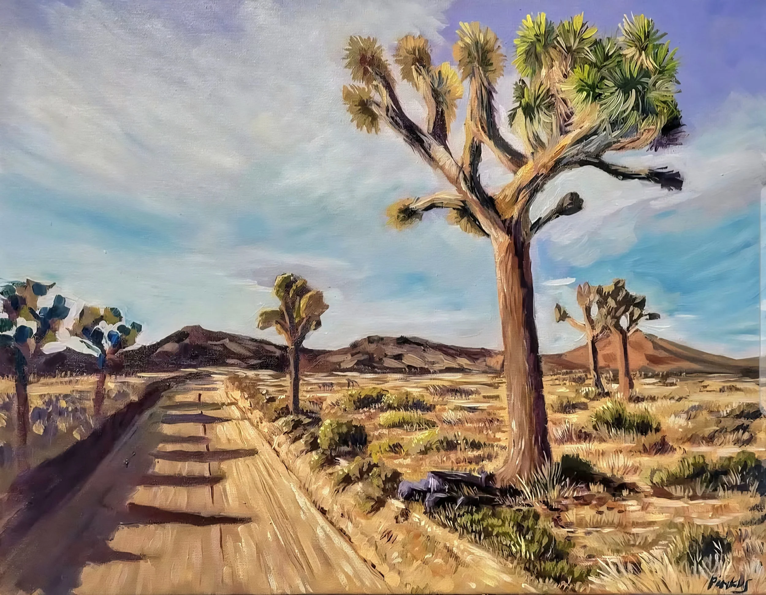 I painted this dusky scene of a sturdy Joshua Tree early in 2023. I was still learning what made an oil painting a success, and quite frankly, how to paint one in general! I’m still proud of this piece, and I think I really caught the afternoon light and the feeling of peace.