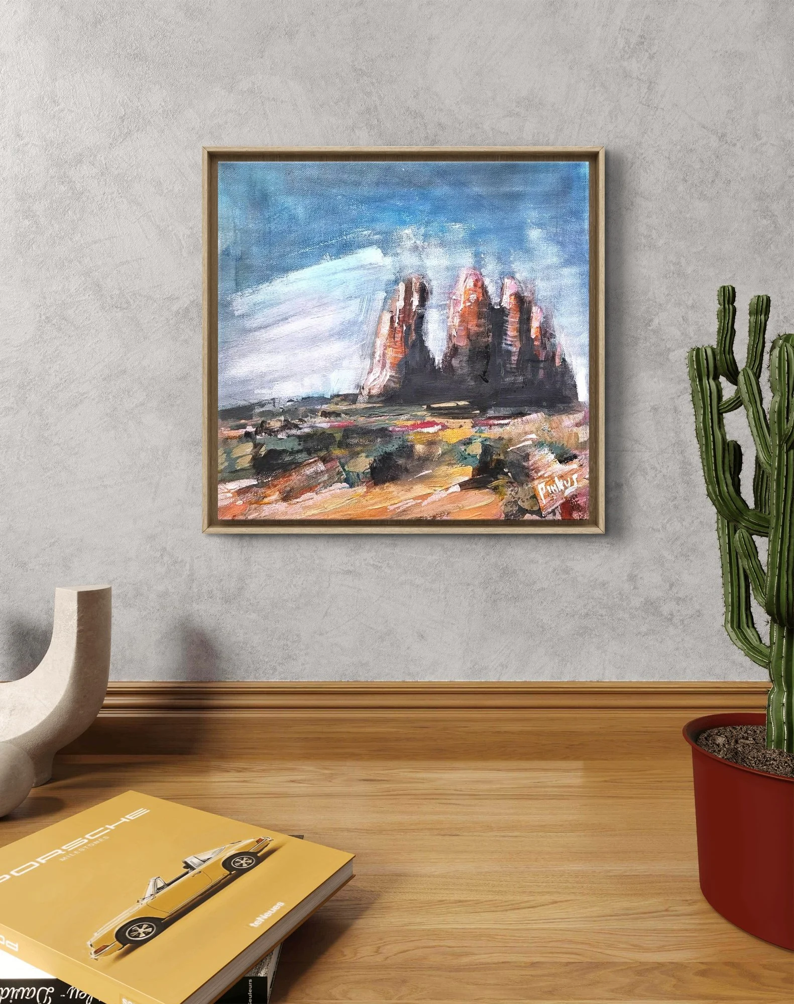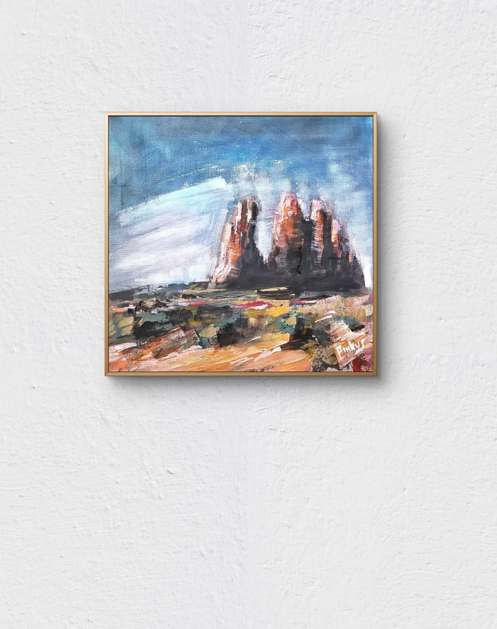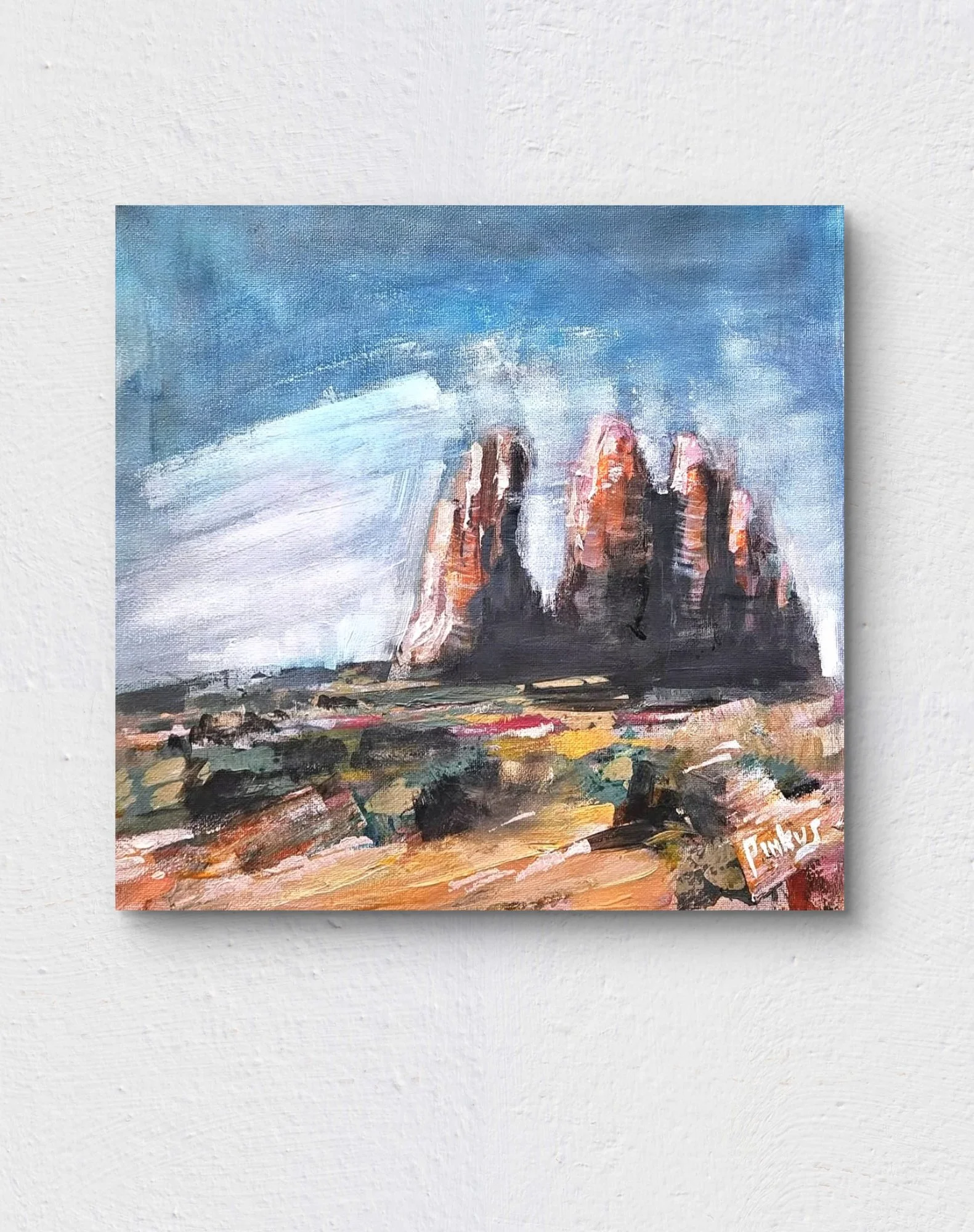 A different take on the Southwestern landscape, from brightly colored, slightly abstract acrylic paintings to bold, expressive, and evocative ink pieces.